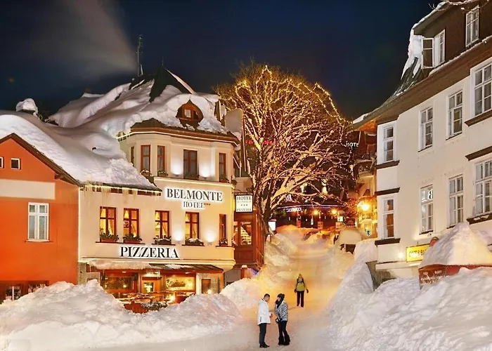 Hotel Pizzeria Belmonte Špindlerŭv Mlýn est placé dans un quartier de ski de Špindlerŭv Mlýn, à moins de 7 km de Słonecznik Rock et à seulement 1 km de la Station de ski de Svatý Petr. L'hotel sans fumée est situé à une courte distance du Téléphérique de Svaty Petr-Plan et dispose d'un jardin japonais et d'un parc aquatique.